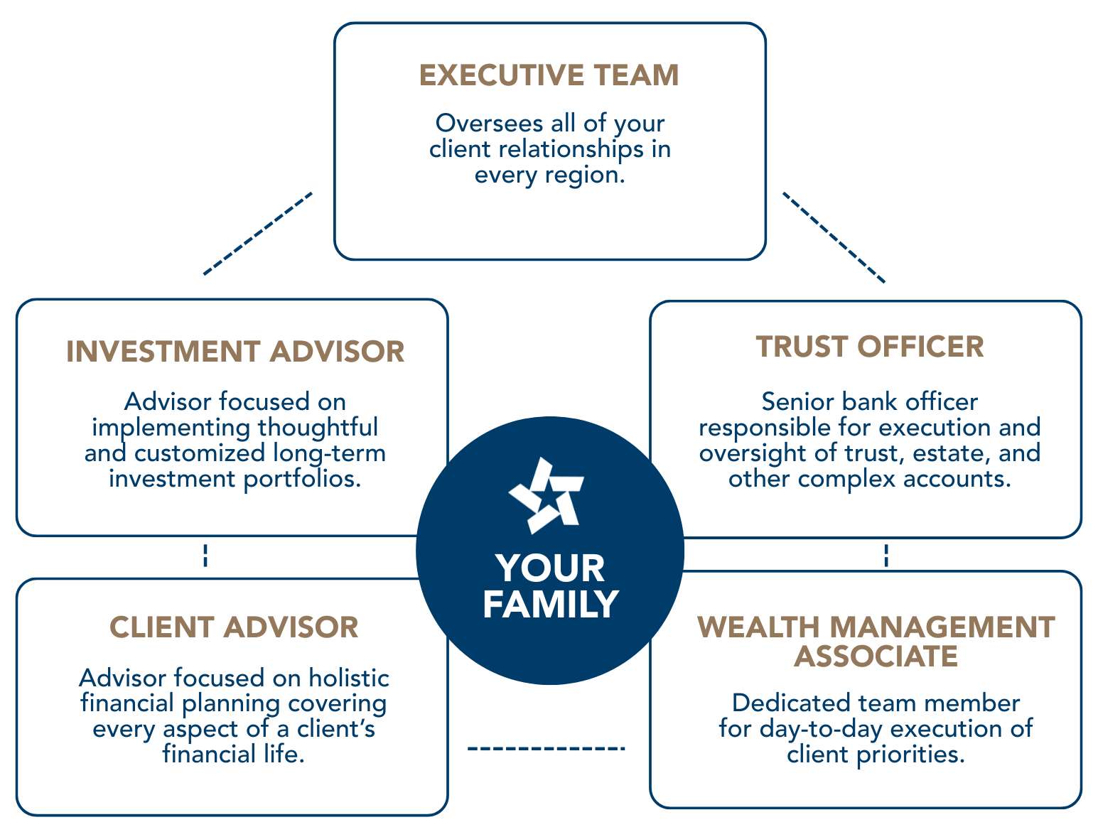 TRB Trust & Wealth Management is a boutique fiduciary division of Texas Regional Bank, providing personalized advice and solutions to help clients manage, protect, and transfer wealth across generations. The team delivers investment management, estate and trust administration, financial planning, and family office services, offering strategies designed to meet complex needs and long-term goals.