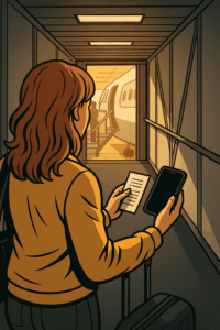 Now her turn, the same message appeared. She switched back to her boarding pass just in time to scan it and tuck her phone away. She started down the jetway, confident—and unaware—she’d figure it out later.