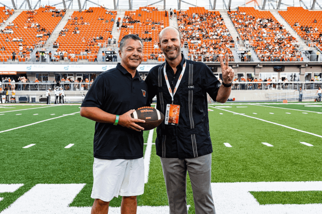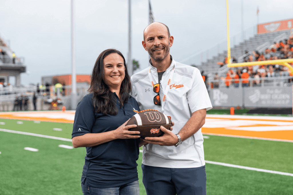 As part of our ongoing partnership with The University of Texas Rio Grande Valley (UTRGV) and UTRGV Athletics, TRB supported the university’s inaugural Division I football season, which concluded in November. Throughout the season, a member of our executive team was invited to present the official game ball at each home game alongside UTRGV Vice President and Director of Athletics Chasse Conque—a simple but meaningful way to honor a milestone moment for the university and the Rio Grande Valley.