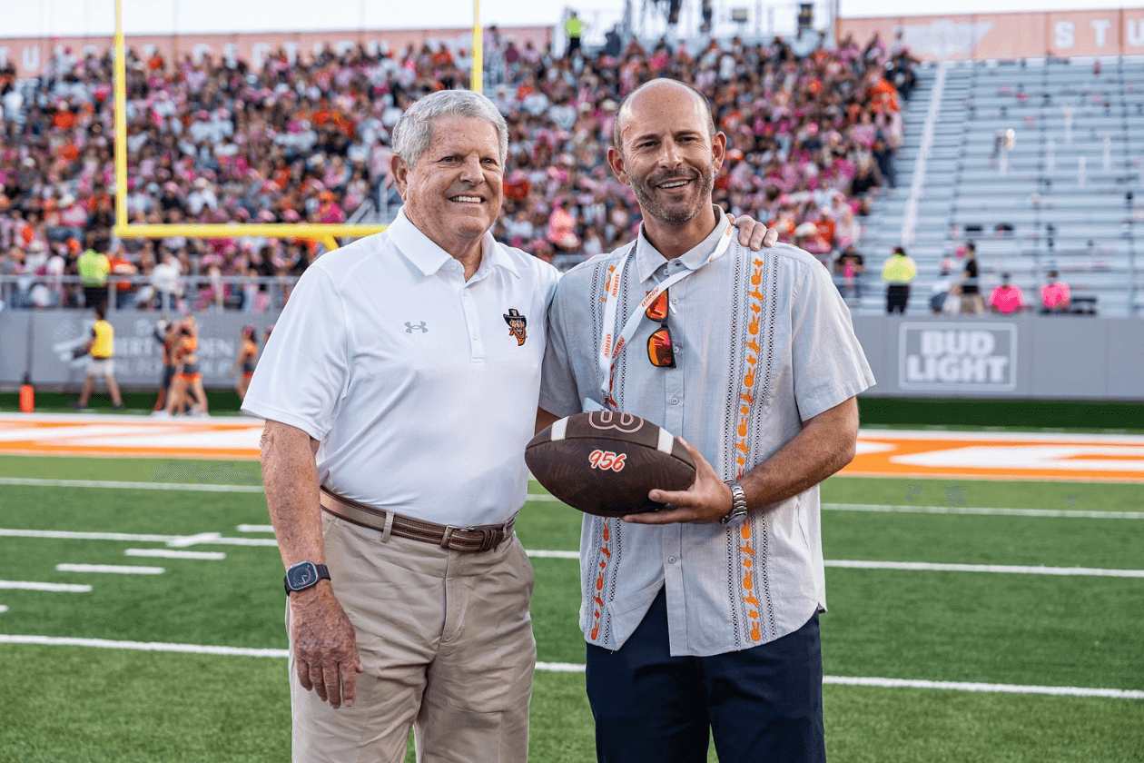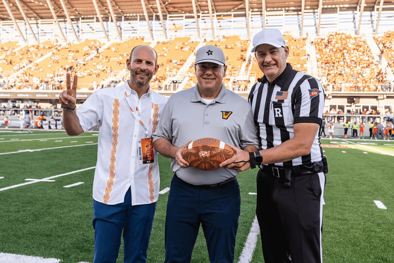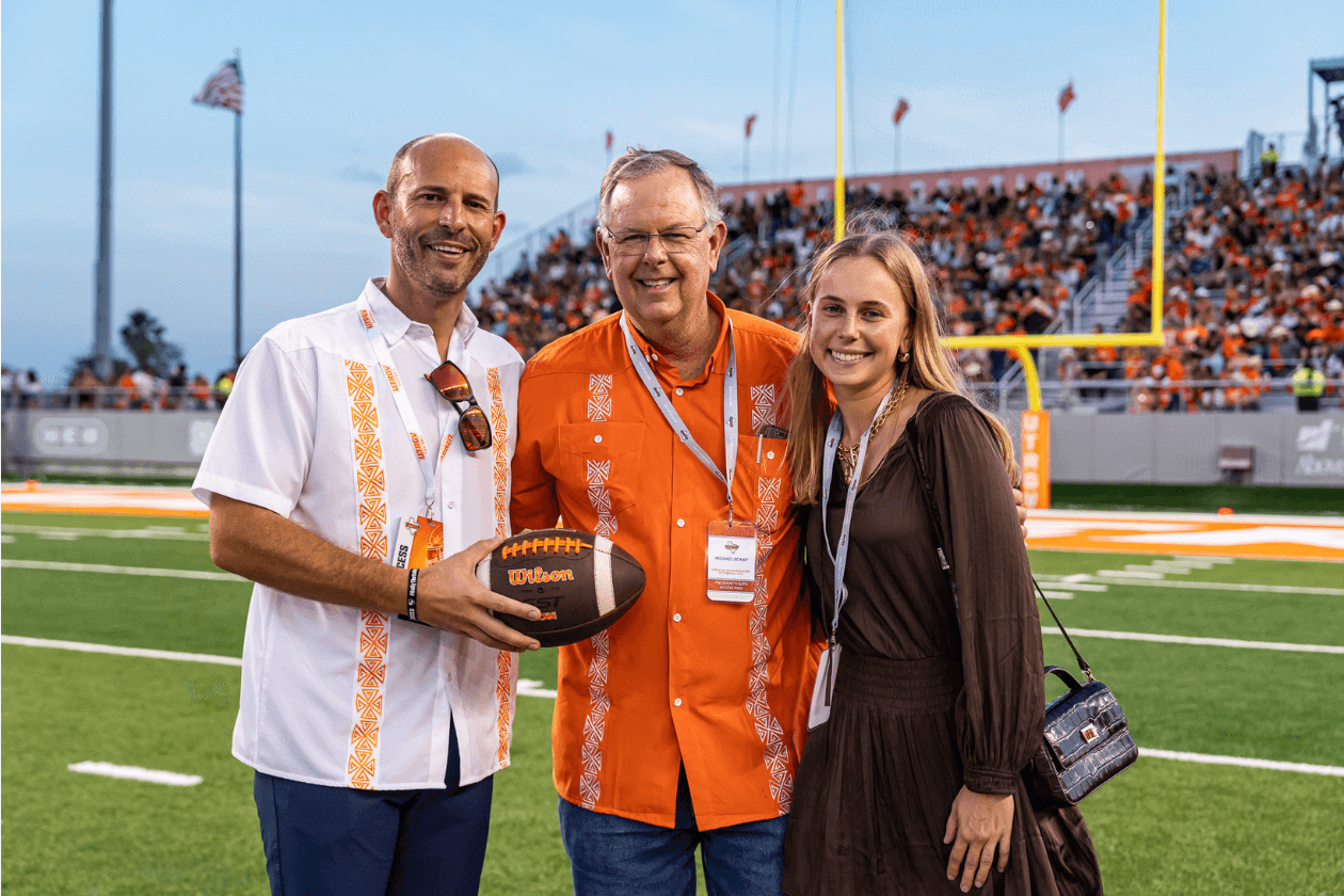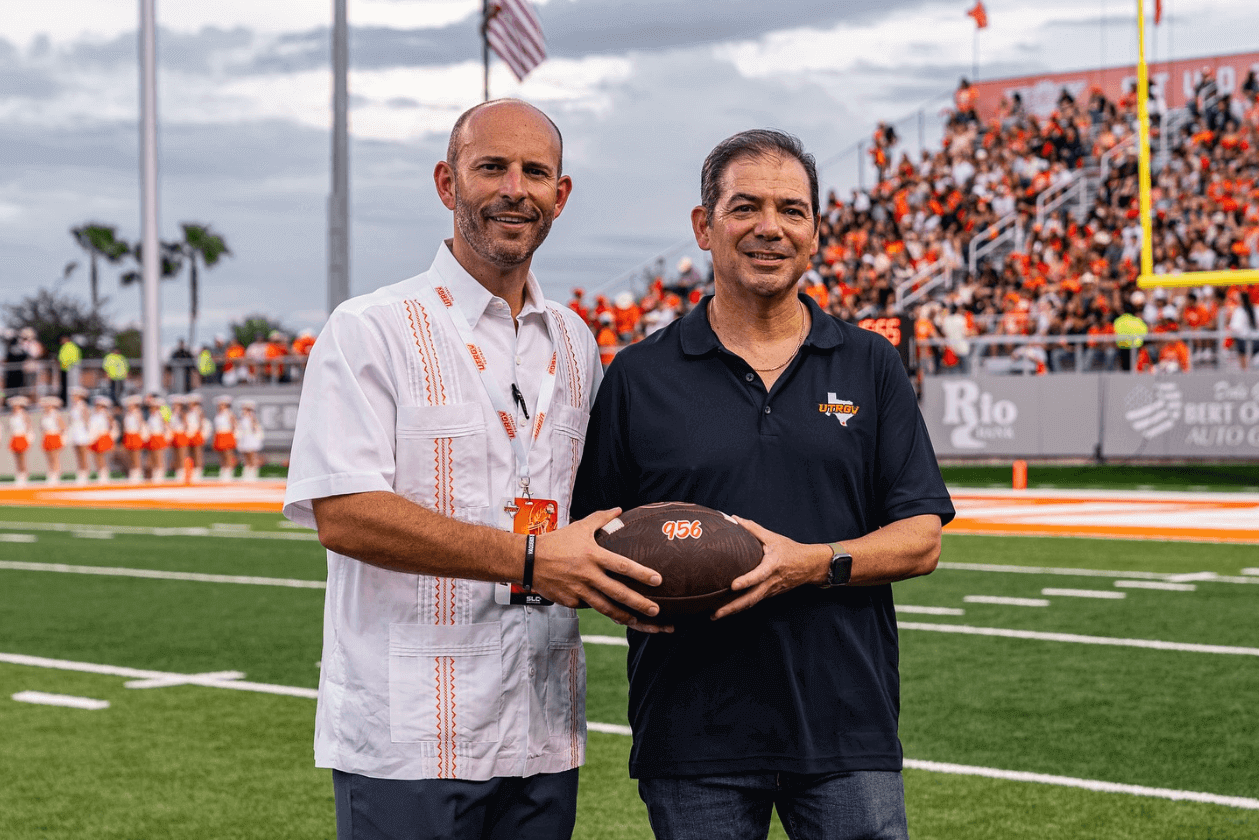 As part of our ongoing partnership with The University of Texas Rio Grande Valley (UTRGV) and UTRGV Athletics, TRB supported the university’s inaugural Division I football season, which concluded in November. Throughout the season, a member of our executive team was invited to present the official game ball at each home game alongside UTRGV Vice President and Director of Athletics Chasse Conque—a simple but meaningful way to honor a milestone moment for the university and the Rio Grande Valley.