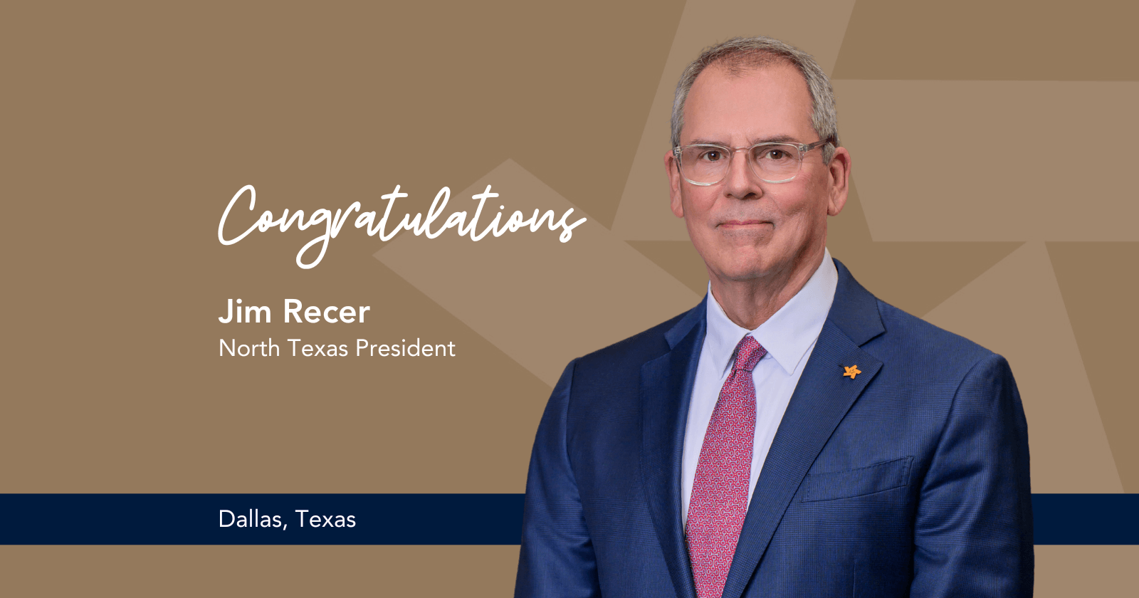 Texas Regional Bank (TRB) announces the appointment of Jim Recer as North Texas President, with oversight of both the Community Bank and Commercial Bank.