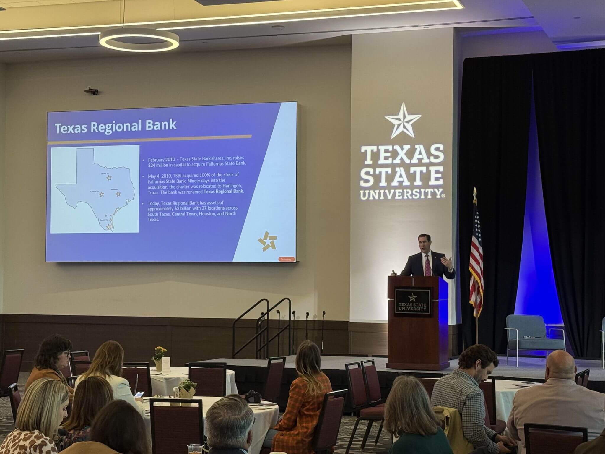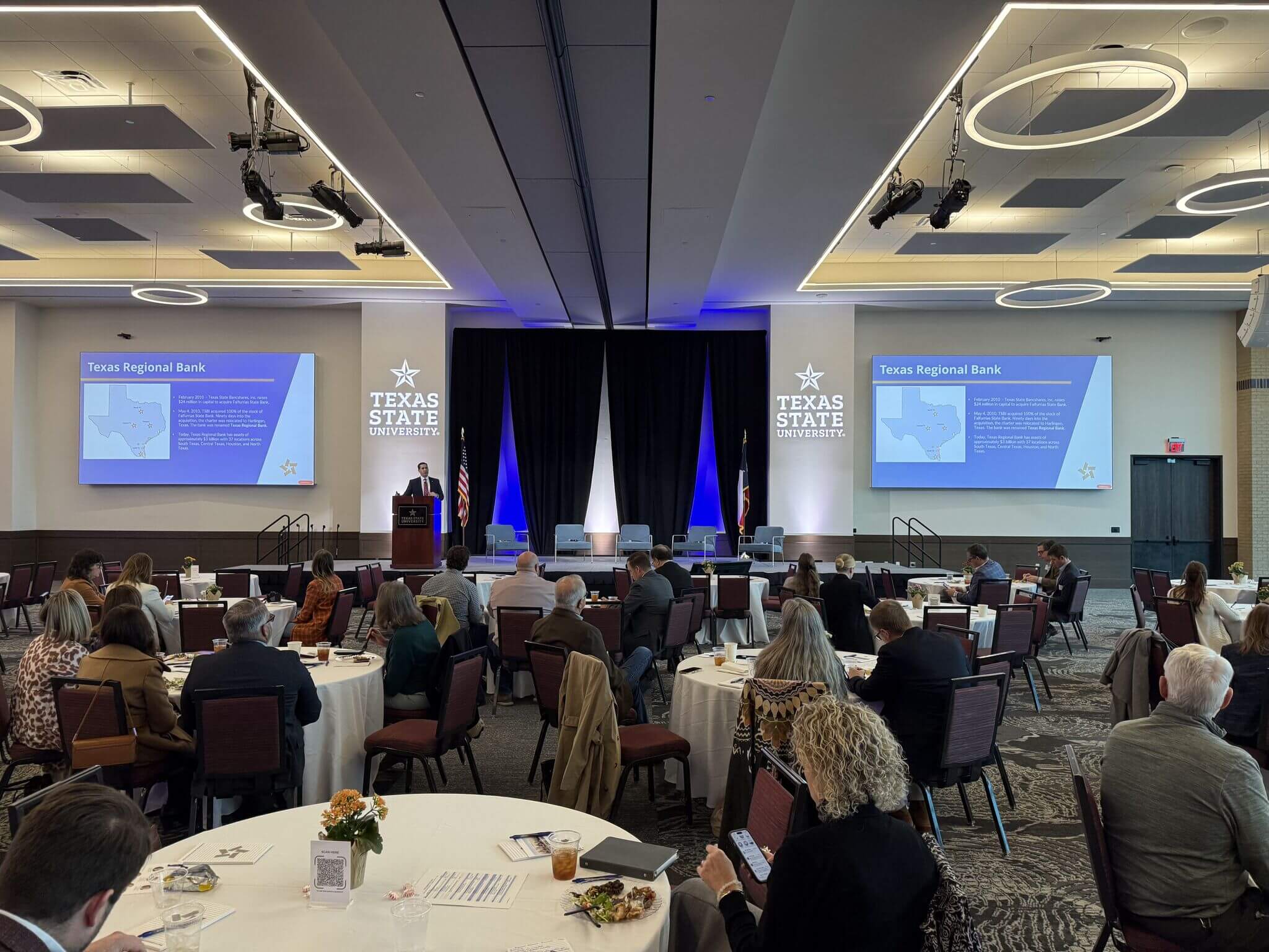 Texas Regional Bank (TRB) partnered with Corridor Title to co-host the Regional Economic Summit at Texas State University in San Marcos, bringing together business, civic, and economic development leaders from across Central Texas for a focused discussion on the region’s continued growth.